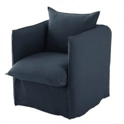 Maisons Du Monde Housses De Fauteuil Housse De Fauteuil En Lin Froissé Bleu Nuit