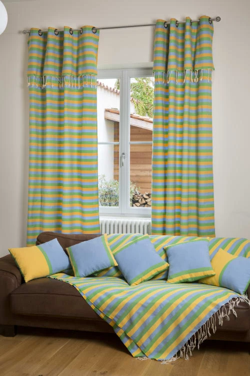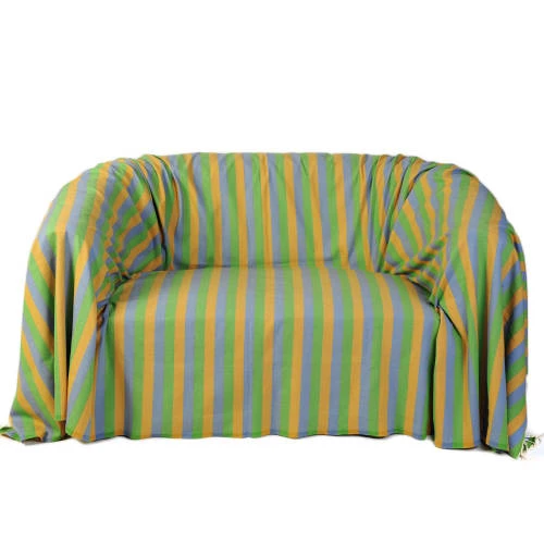 Fouta Futée Housses De Canapé Jeté De Canapé 100% Coton Blanc Rayures Bleu 200 X 300