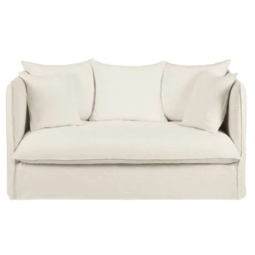 Maisons Du Monde Housses De Canapé Housse De Canapé 2 Places En Lin Froissé Blanc
