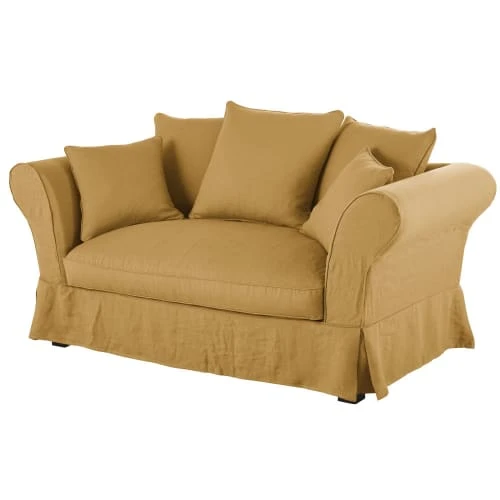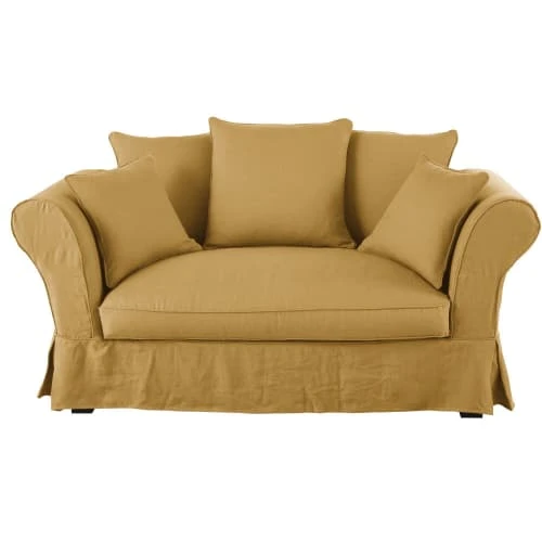 Maisons Du Monde Housses De Canapé Housse De Canapé 2 Places En Lin Froissé Ocre
