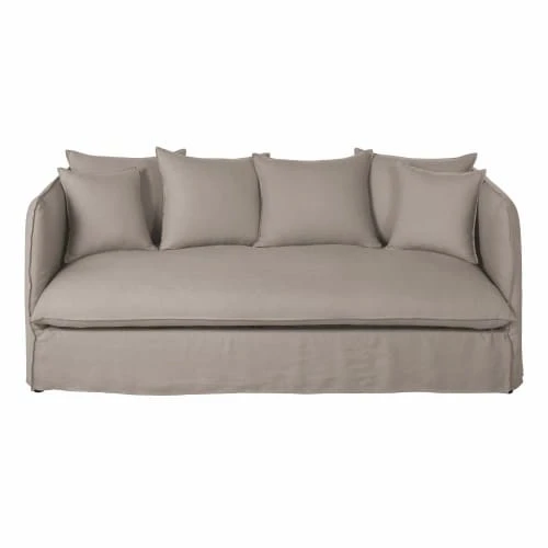 Maisons Du Monde Housses De Canapé Housse De Canapé 3/4 Places En Lin Supérieur Beige Ficelle