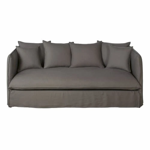Maisons Du Monde Housses De Canapé Housse De Canapé 3/4 Places En Lin Supérieur Gris