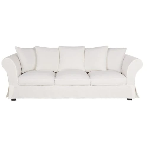 Maisons Du Monde Housses De Canapé Housse De Canapé 4/5 Places En Lin Froissé Blanc
