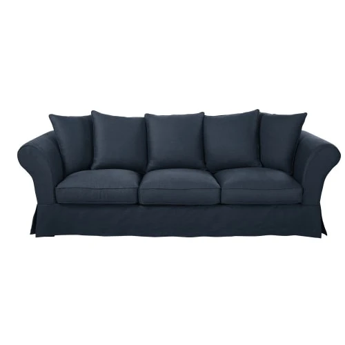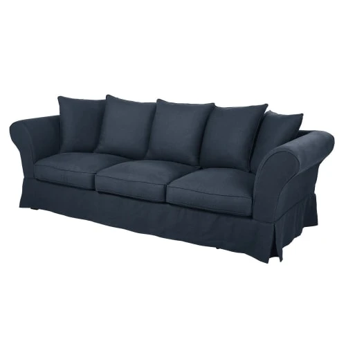 Maisons Du Monde Housses De Canapé Housse De Canapé 4/5 Places En Lin Froissé Bleu Nuit