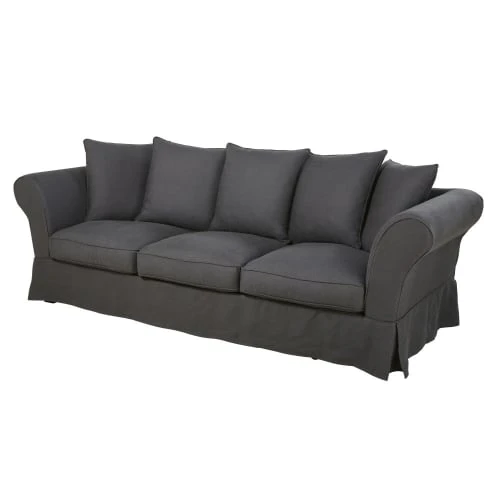 Maisons Du Monde Housses De Canapé Housse De Canapé 4/5 Places En Lin Froissé Gris Anthracite