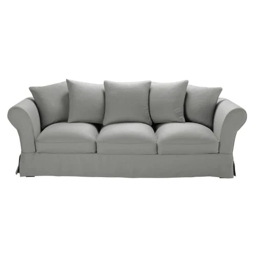 Maisons Du Monde Housses De Canapé Housse De Canapé 4/5 Places En Lin Froissé Gris Clair