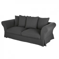 Maisons Du Monde Housses De Canapé Housse De Canapé Convertible 3/4 Places (12 Cm) En Lin Froissé Gris Anthracite