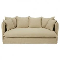 Maisons Du Monde Housses De Canapé Housse De Canapé Convertible 3/4 Places En Lin Froissé Beige Ficelle