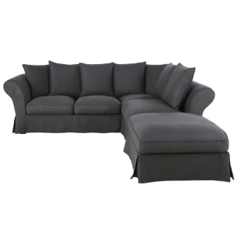 Maisons Du Monde Housses De Canapé Housse De Canapé D’angle Convertible (6 Cm) En Lin Froissé Bleu Céladon