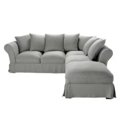Maisons Du Monde Housses De Canapé Housse De Canapé D’angle Convertible (6 Cm) En Lin Froissé Bleu Nuit