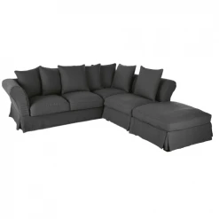 Maisons Du Monde Housses De Canapé Housse De Canapé D’angle Convertible En Lin Froissé Gris Anthracite