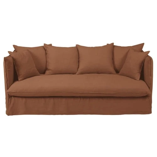 Maisons Du Monde Housses De Canapé Housse De Canapé-lit 3/4 Places En Lin Froissé Orange De Sienne
