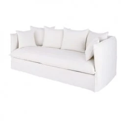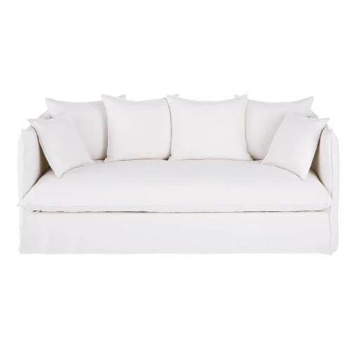 Maisons Du Monde Housses De Canapé Housse De Canapé-lit 3/4 Places En Lin Supérieur Blanc