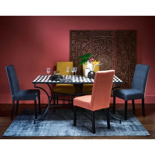Allure solaire, style subtilement vintage… L’ocre fait son grand retour dans nos intĂ©rieurs avec la housse de chaise en tissu ocre MARGAUX !